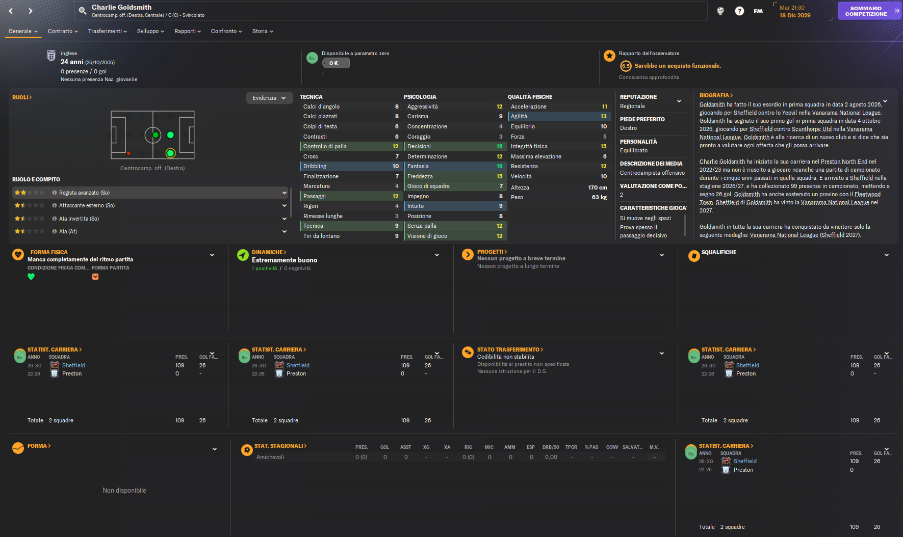 Lankester, una naturale Ala Invertita, arriva a parametro zero e rappresenta un netto miglioramento tecnico rispetto a Goldsmith, che era stato adattato al ruolo senza grandi risultati. Con un valore di mercato stimato tra i 5 e i 7 milioni di euro, il suo acquisto sottolinea l’abilità della società nel cogliere opportunità e massimizzare le risorse.