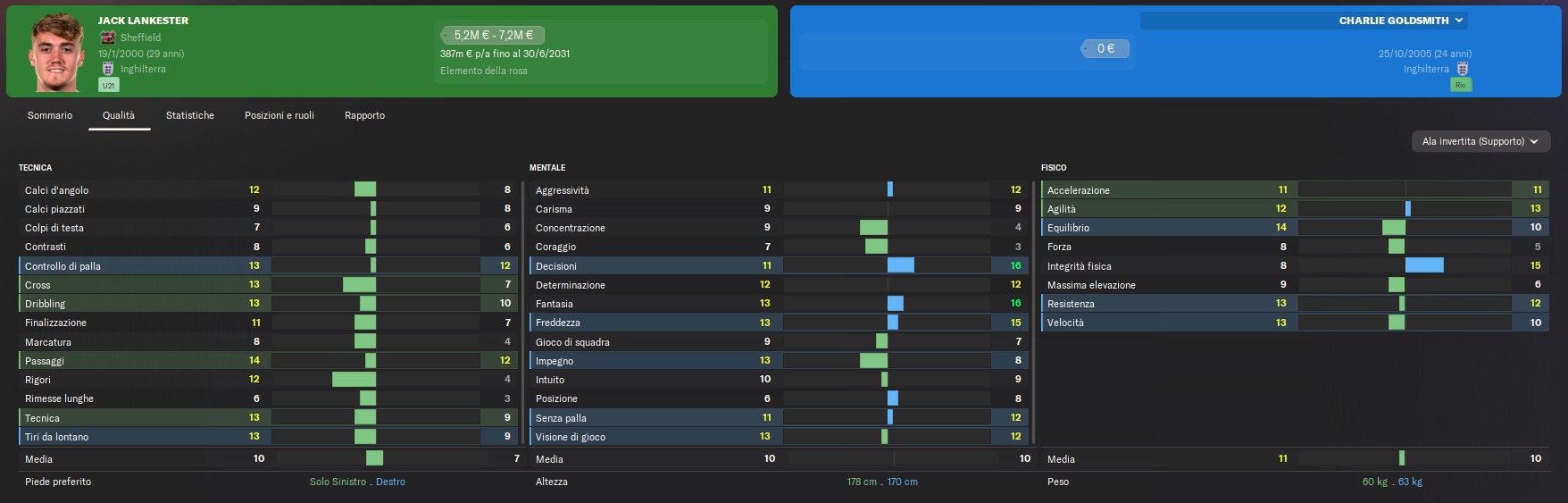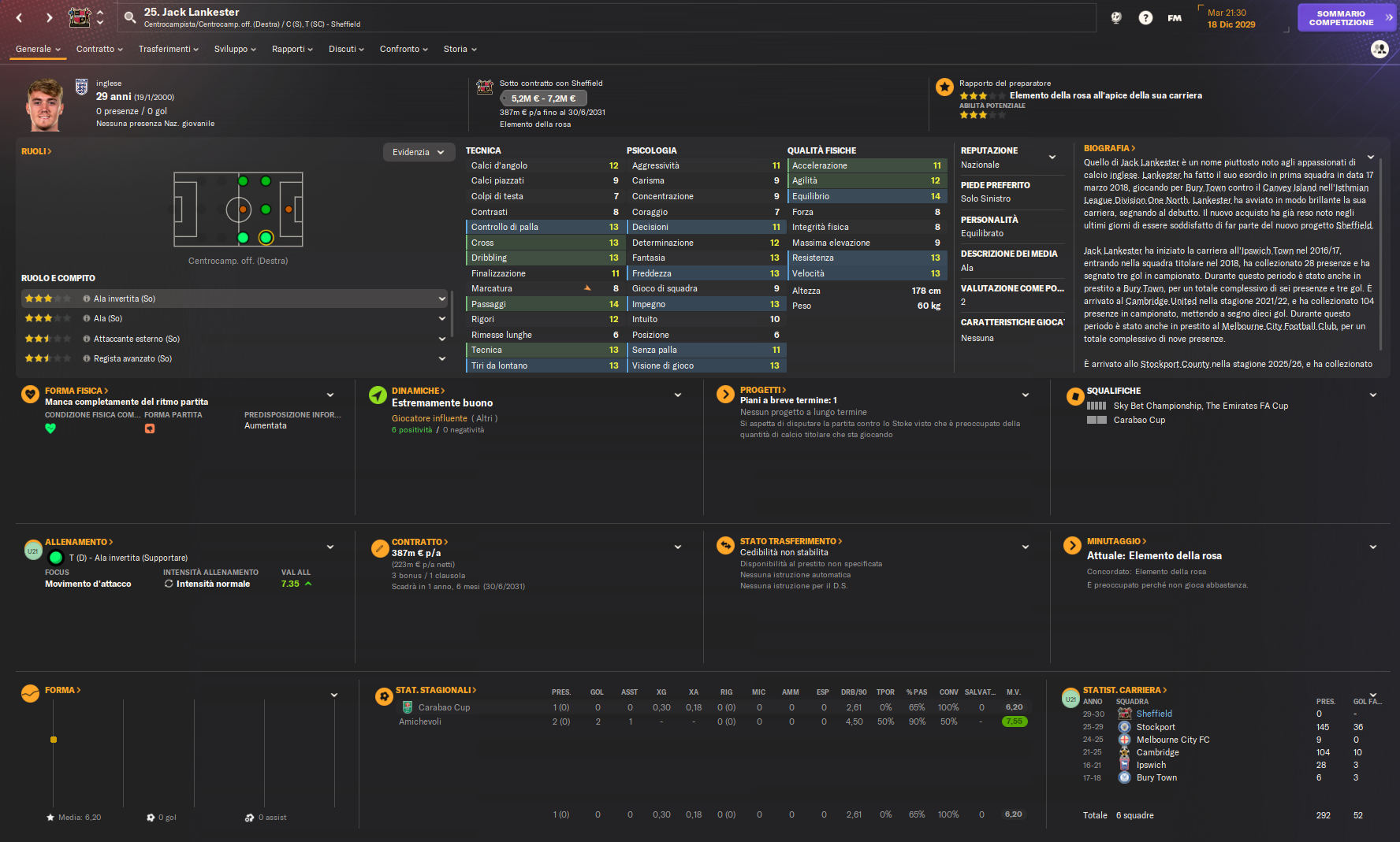 Lankester porta un significativo upgrade alla rosa, grazie alle sue eccellenti capacità tecniche nei cross, nel dribbling e nei tiri dalla distanza. Queste qualità si sposano perfettamente con il sistema fluido del 5-2-3 adottato dal manager, aumentando la pericolosità offensiva sulle fasce e aggiungendo profondità alla rosa.