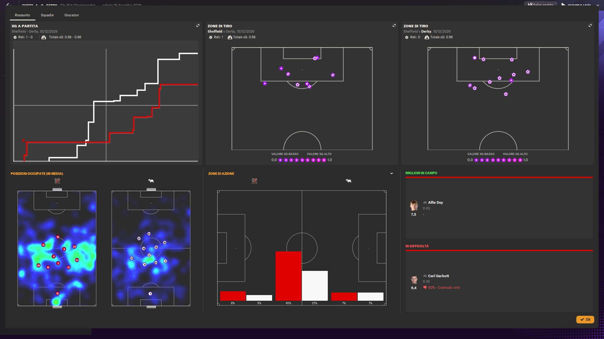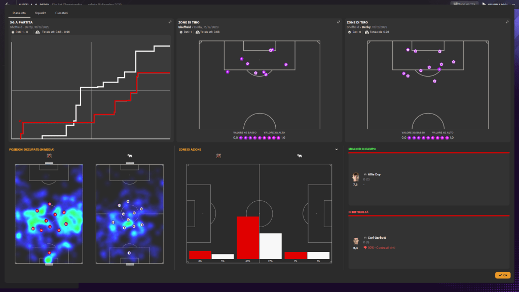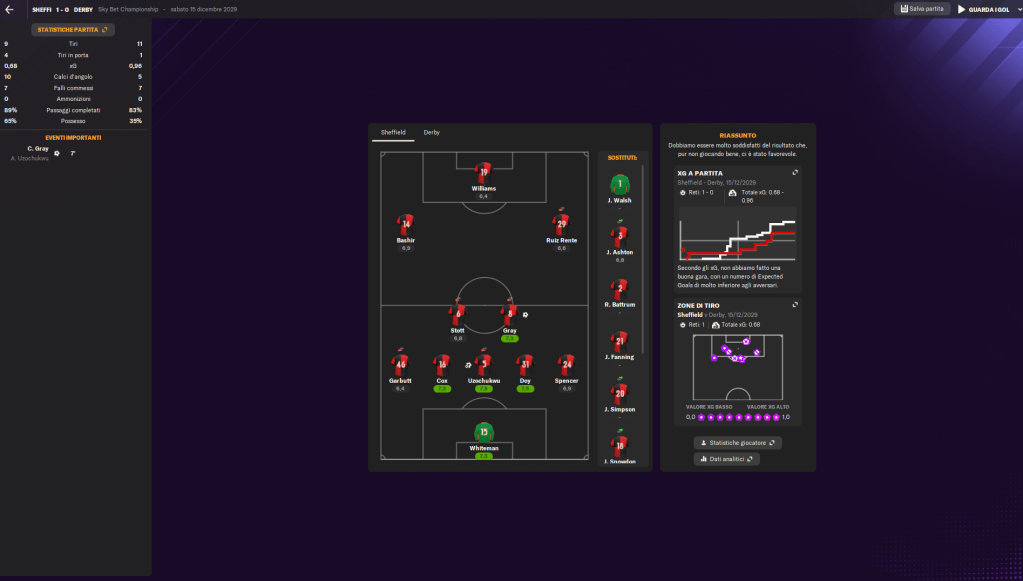Dopo la rete iniziale, continuiamo a gestire il possesso con personalità, dominando il gioco e impedendo al Derby County di costruire azioni pericolose. Gli avversari riescono a rendersi pericolosi solo con conclusioni dalla distanza o situazioni di palla inattiva, segno della nostra solidità difensiva e della capacità di mantenere il controllo della gara.