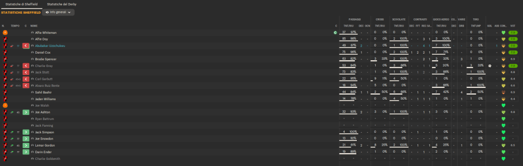 Il nostro Sheffield United scende in campo con l’obiettivo di consolidare il primato in classifica e parte subito con il piede sull’acceleratore. Dopo pochi minuti troviamo il gol del vantaggio, sfruttando l’intensità del nostro pressing e la fluidità della manovra offensiva. L’avvio deciso ci permette di indirizzare la partita a nostro favore sin dalle prime battute.