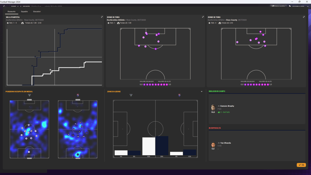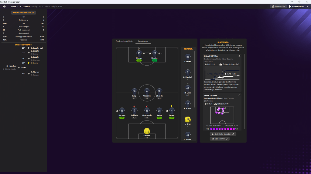 - Azioni pericolose: Ross County ha creato più occasioni nitide, sfruttando meglio le opportunità.