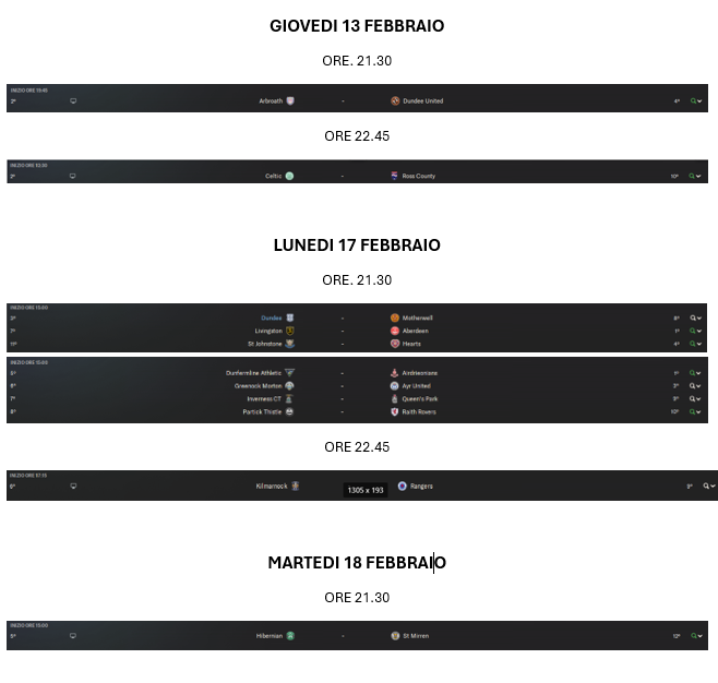 Date e Orari di Anticipi, Posticipi e Lunch Match sempre aggiornati.
