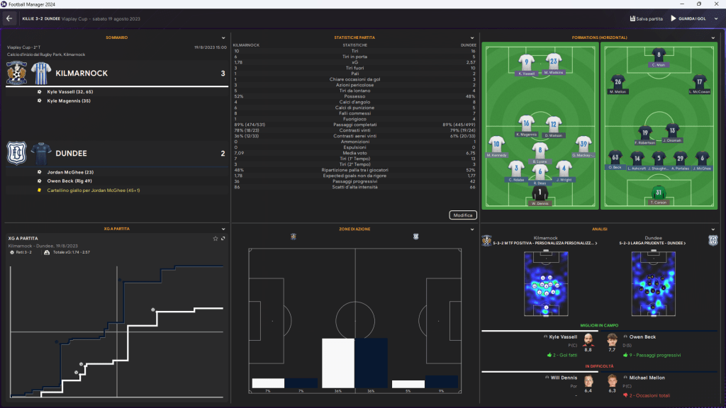 “Sapevamo che il Dundee ci avrebbe messo in difficoltà e il gol subito, l’ennesimo da corner, ci aveva un po’ tagliato le gambe. Per fortuna i ragazzi non si sono demoralizzati ed hanno continuato a crederci mettendo in mostra una buona prestazione sia mentale che tecnica.“