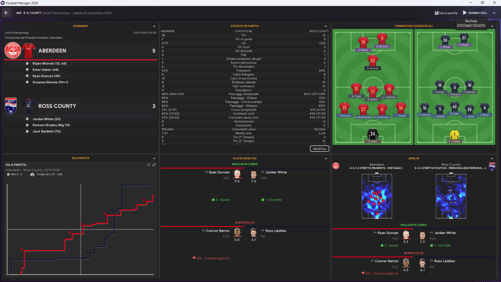 L’Aberdeen si impone in una partita folle, mostrando tutto il suo potenziale offensivo. Il Ross County, però, esce a testa alta: lotta fino alla fine e conferma di essere una squadra capace di far male a chiunque.
