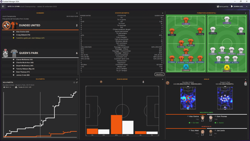 Dunfermline Athletic continua a essere la squadra da battere in questa stagione. Dopo una vittoria convincente contro Raith Rovers, la squadra si conferma al vertice, mostrando un gioco solido e ben organizzato. Anche se l’avversario ha cercato di rispondere con qualche occasione pericolosa, il controllo della partita è stato saldamente nelle mani di Dunfermline, che ha saputo mantenere il vantaggio senza troppe difficoltà.