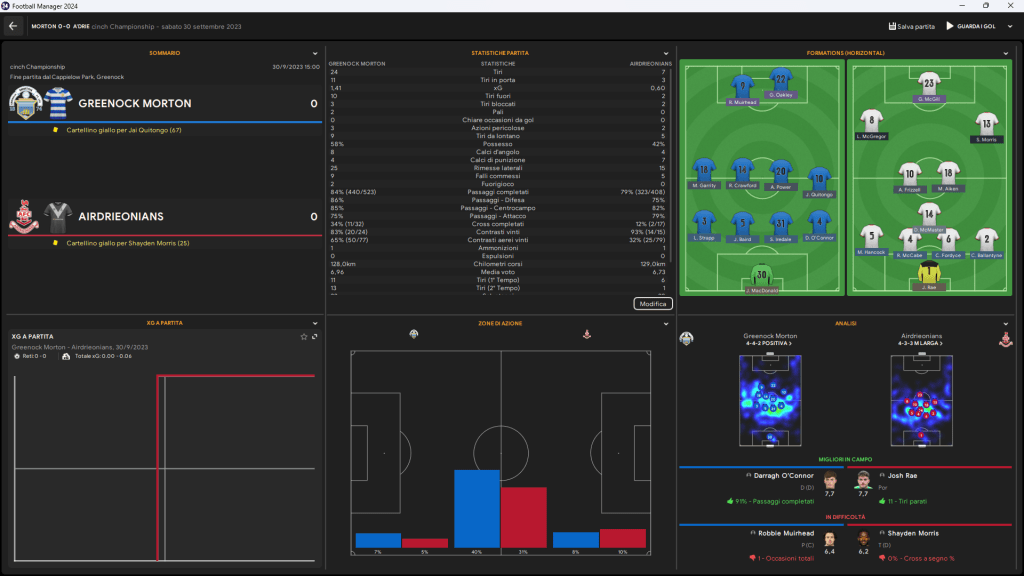 A Greenock Morton, la partita contro Airdrieonians si è conclusa senza reti, ma con entrambe le squadre che hanno dato tutto in campo. Il pareggio a reti inviolate non è certo quello che ci si aspettava, ma entrambe le squadre hanno mostrato una difesa solida e una mancanza di concretezza in fase offensiva. Nonostante il punto guadagnato, Greenock Morton e Airdrieonians sanno che dovranno migliorare per poter puntare in alto nella classifica.