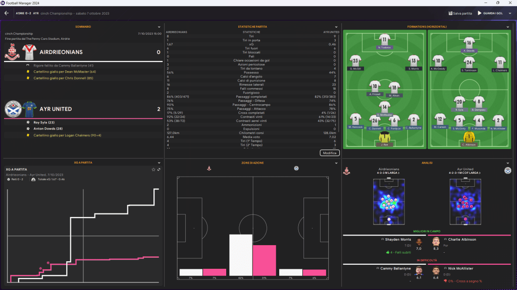 Nel cuore di Airdrie, l’atmosfera è carica di aspettative. Al Penny Cars Stadium, l’Ayr United arriva con un obiettivo chiaro: vincere, farlo con forza e determinazione. E così sarà. La partita inizia con l’Ayr United che prende immediatamente il controllo, senza lasciare spazio agli avversari. Al 23′ Roy Syla apre le danze con un gol che manda in visibilio i tifosi, che vedono in quel momento un futuro già segnato. L’Airdrieonians non riesce a reagire, i tentativi sono timidi, mentre al 28′ Anton Dowds chiude la partita con un gol che fa tirare un sospiro di sollievo ai suoi compagni. La partita si spegne tra la frustrazione degli avversari e il trionfo di chi ha creduto nella vittoria dall’inizio.