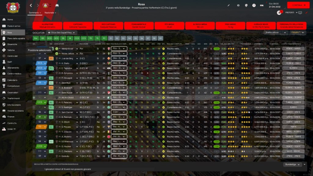 Talento e prospettiva Numerosi giovani mostrano un potenziale altissimo: stelle emergenti come Mbamba e Bravo ricevono valutazioni da top player del futuro, con margini di crescita impressionanti. La dirigenza sta investendo su una filosofia di sviluppo e valorizzazione interna, unita a scelte mirate sul mercato.