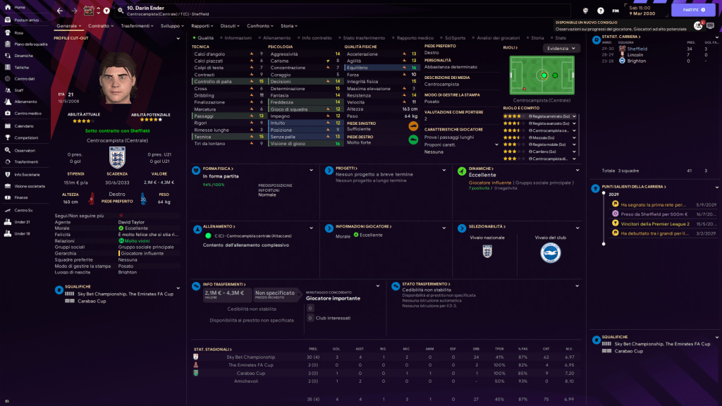 È già stato premiato come “Gol del mese” e “Giocatore del mese U21”.