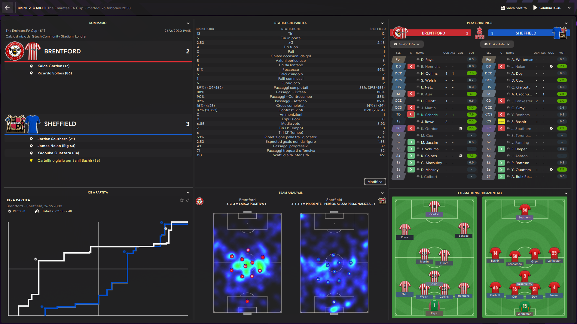 A Brentford, in casa di una squadra di categoria superiore, lo Sheffield ha tirato fuori il meglio del suo spirito. 3-2 in trasferta, con gol di Southern, Nolan e Ouattara, una rimonta costruita con cuore e lucidità. Lo scarto tra xG (2.53 Brentford – 2.48 Sheffield) racconta l’equilibrio, ma la differenza vera l’ha fatta la voglia. Adesso, dopo Arsenal e Brentford, il club guarda avanti anche in coppa. E sogna.