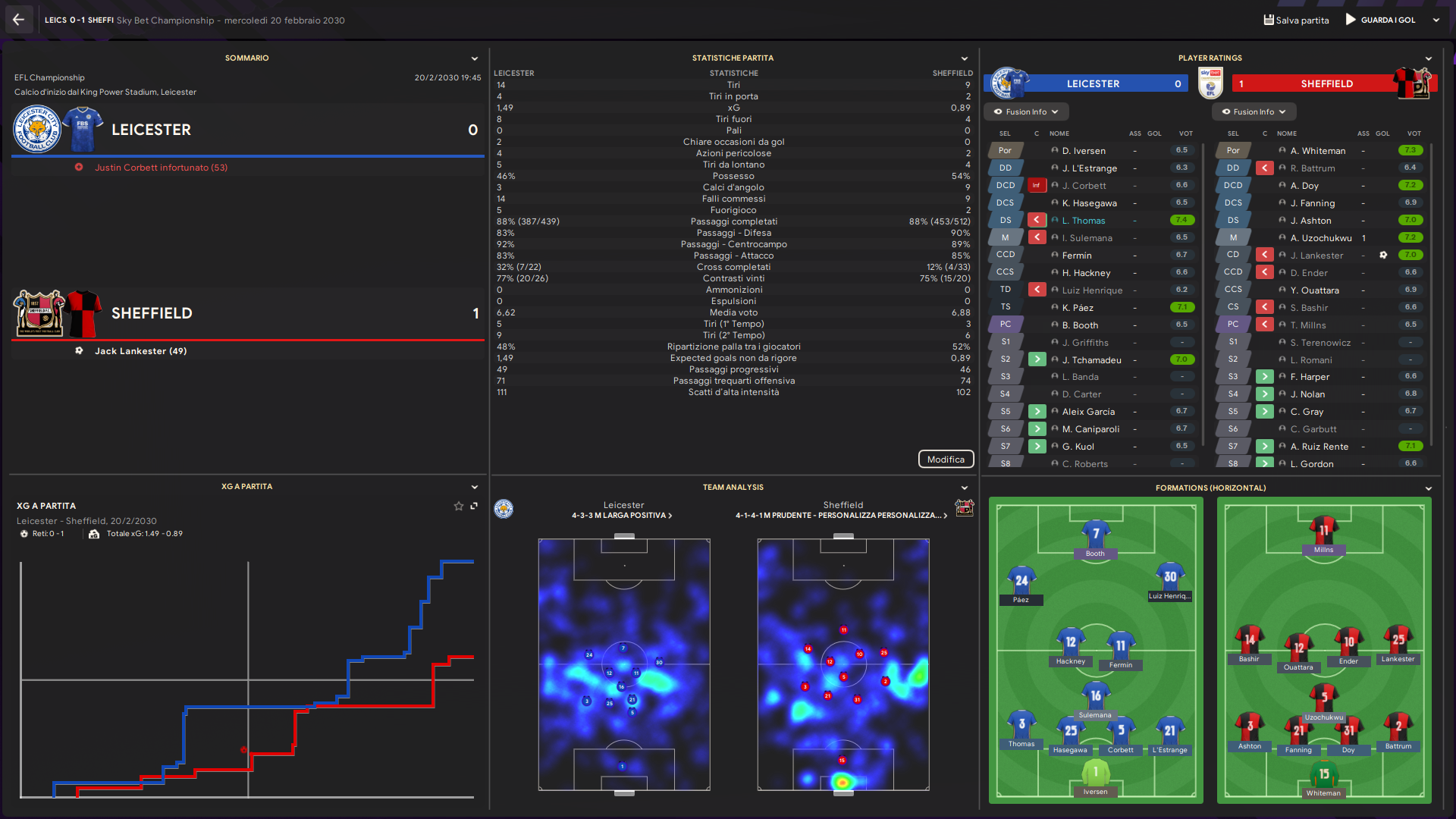 Uno 0-1 esterno pesante come il ferro. Lankester ha firmato il colpo che ha steso una delle rivali dirette, ma è stato il collettivo a dire la verità. Solo 0.89 xG, un baricentro basso e un controllo silenzioso. Quando Leicester ha provato ad alzare il ritmo, si è schiantata contro un muro.