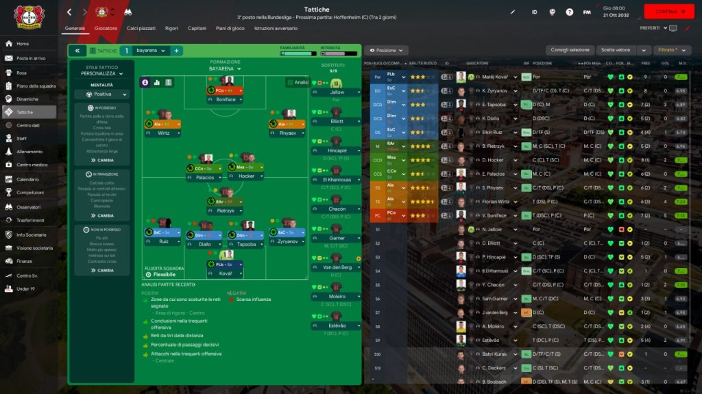 - I valori di forma e morale positivi indicano che il gruppo è coeso e ben guidato, elemento cruciale per la tenuta nei match chiave.
