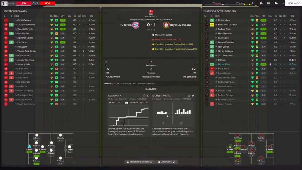 - Florian Wirtz: Giocatore decisivo, con un rating di 7.9 e oltre 13km percorsi. Il suo guizzo ha cambiato le sorti del match.