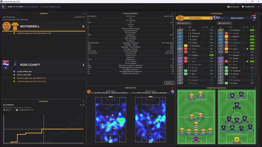 Il Motherwell ha provato a costruire, ma senza incisività; il Ross County ha difeso basso, aspettato e colpito con freddezza. White e Loturi hanno punito una squadra troppo prevedibile.
