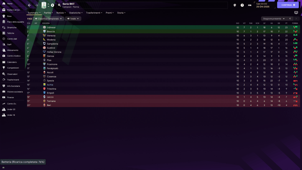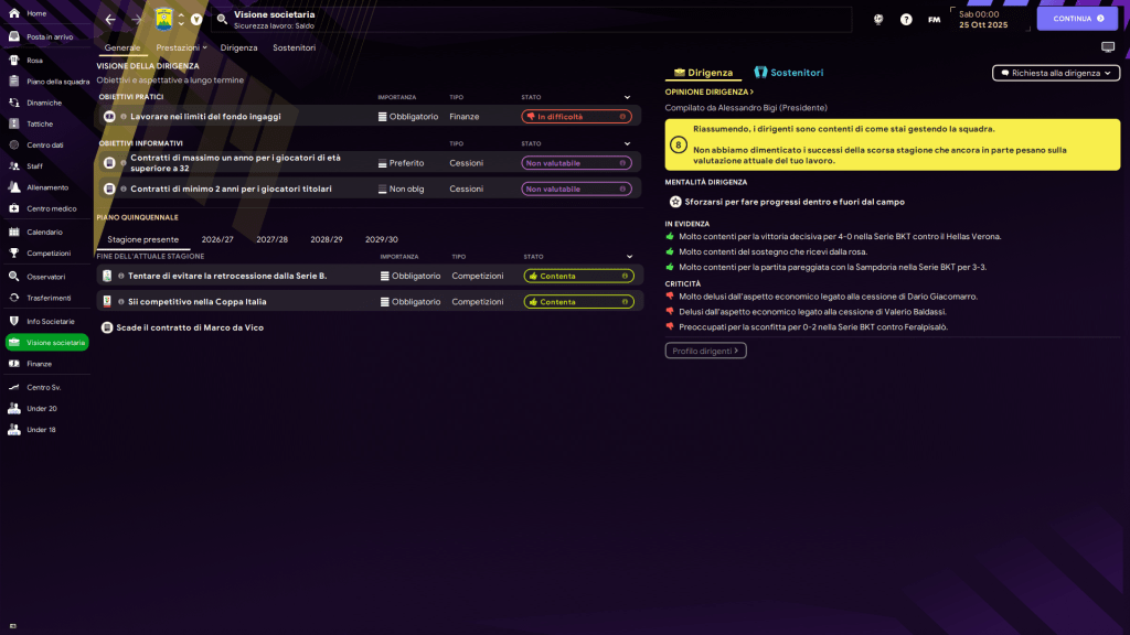 Siamo giunti a metà ottobre, tempo di primi bilanci. Il prossimo post non sarà incentrato sulle partite, ma andremo a ragionare su ciò che sta andando bene e su aspetti in cui siamo deficitari per capire “SE” e “COSA” cambiare, pur essendo partiti da una base tattica consolidata. È importante analizzare non solo i risultati, ma anche il gioco espresso in campo e il morale della squadra, perché ogni piccolo dettaglio può fare la differenza. Nel calcio, avere un’idea di gioco è fondamentale, ma se su quell’idea non ci si lavora per cercare quel dettaglio, quella sfumatura che può migliorarla, il rischio è di rimanere stagnanti. Dobbiamo quindi considerare le soluzioni alternative e promuovere una cultura del miglioramento continuo. Se quell’idea rimane lì, ferma, senza evolversi né adattarsi, prima o poi diventa un’occasione sprecata, un’opportunità persa di crescere e consolidare la nostra competitività nel panorama calcistico.