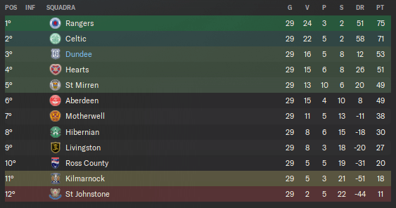 Adesso sono al dal quinto posto, e a soli 4 punti dal Dundee.