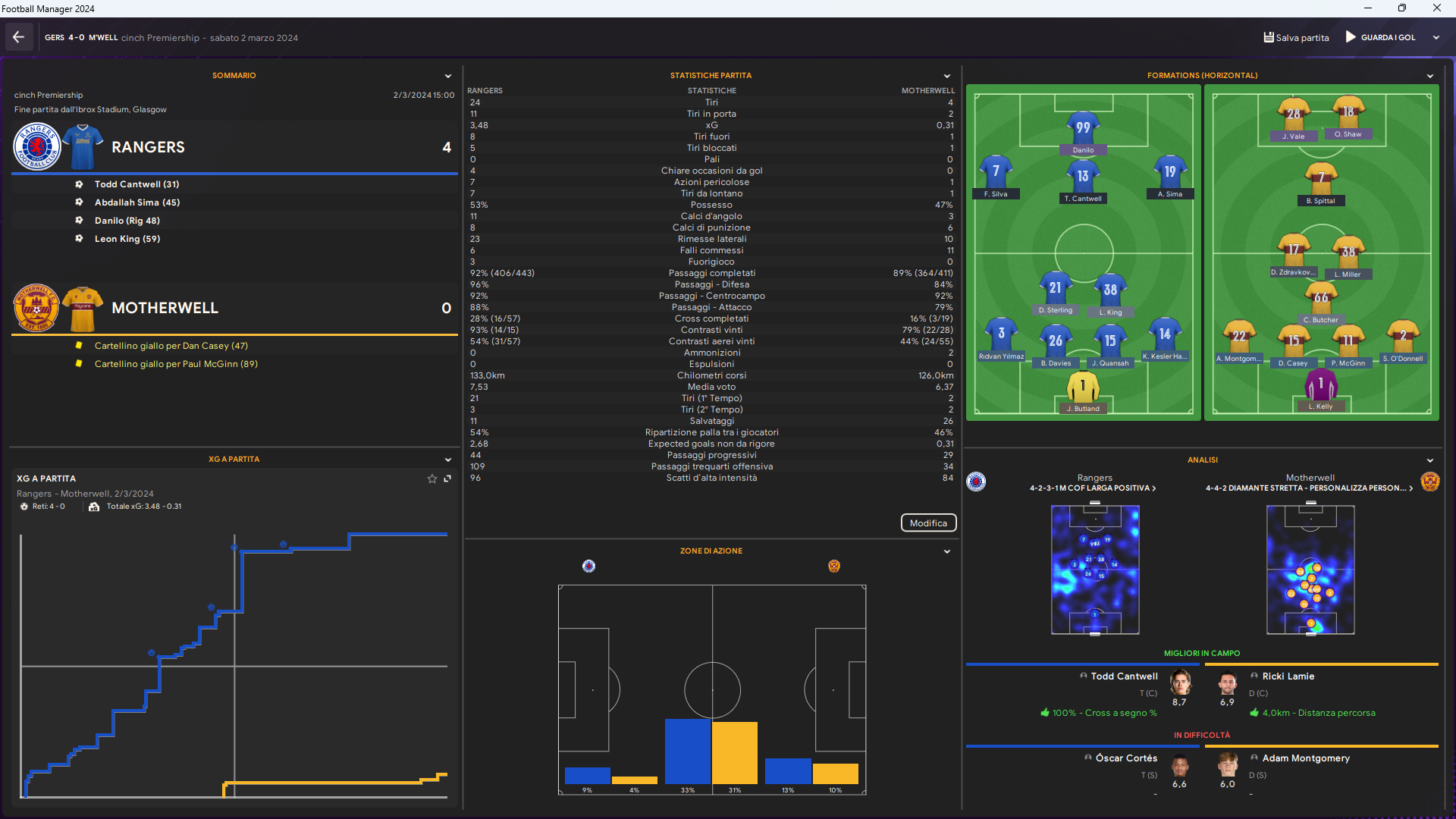 I Rangers vincono ancora, 4-0 al Motherwell, con la naturalezza di chi ha trovato un equilibrio psicologico oltre che tattico. Il possesso è meno brillante del solito, ma l’impatto offensivo è chirurgico: Cantwell si accende, Danilo segna, Leon King cresce partita dopo partita.