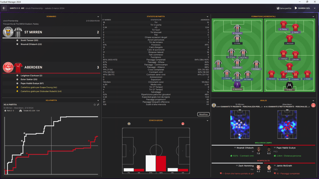 L’Aberdeen ritrova brillantezza negli ultimi 30 metri e un’identità che sembrava essersi smarrita. Clarkson domina la trequarti, Sokler finalizza, e Habib Gueye chiude la partita con un gol che sa di liberazione.