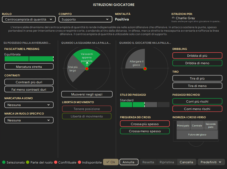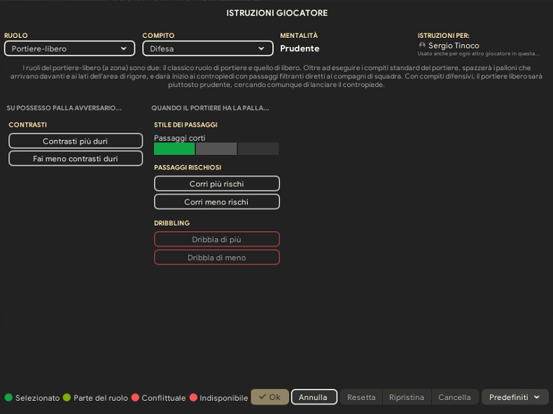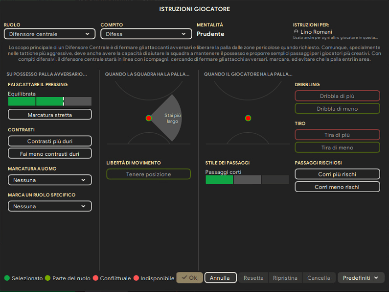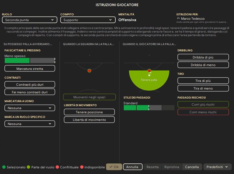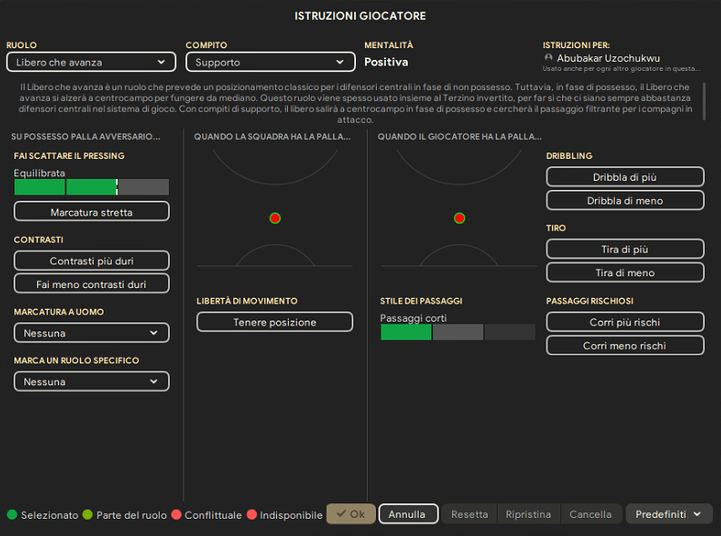 Compito Supporto – Passaggi corti – Pressing equilibrato