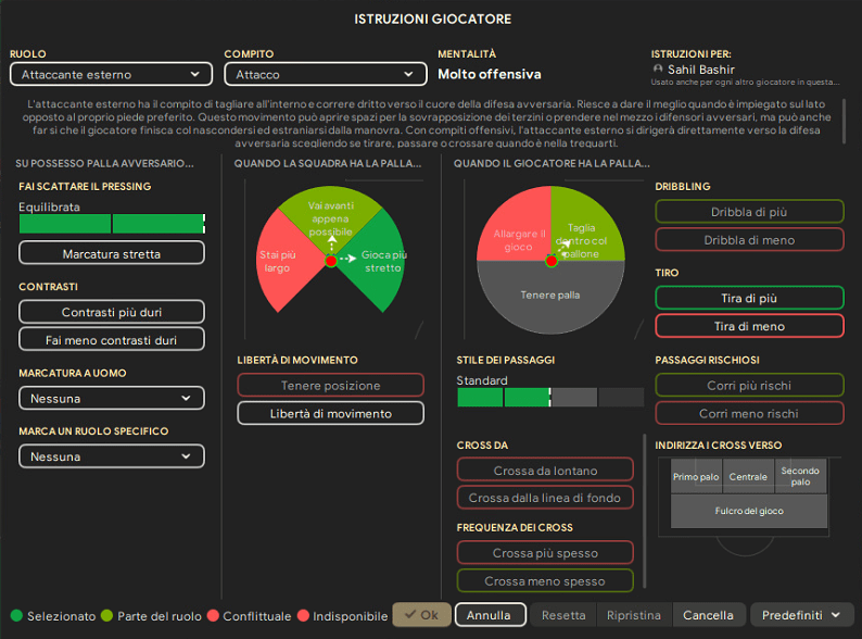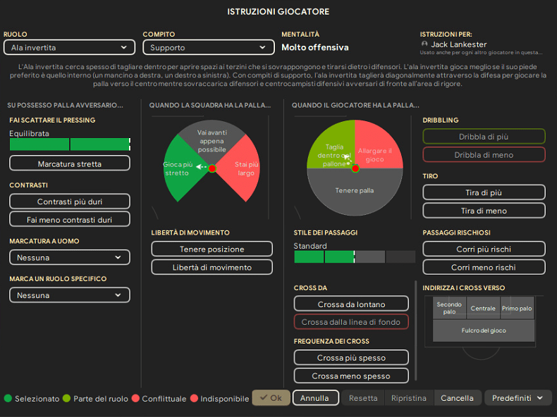 È la freccia che crea spazio agli altri. Attira sul suo lato la difesa e crossa per il taglio sul lato opposto.