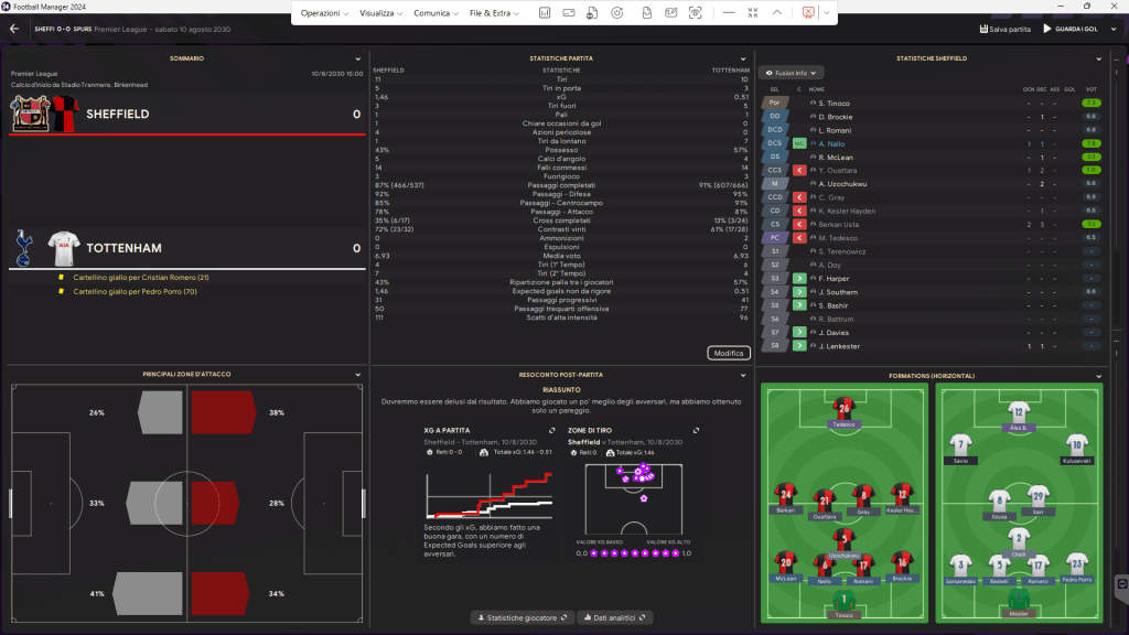 Questo Sheffield non è venuto in Premier per sopravvivere. È venuto per capire, per misurarsi, per costruire. Il 4-1-4-1 regge l’urto, i ragazzi rispondono presente, le idee funzionano anche contro un avversario di livello superiore.