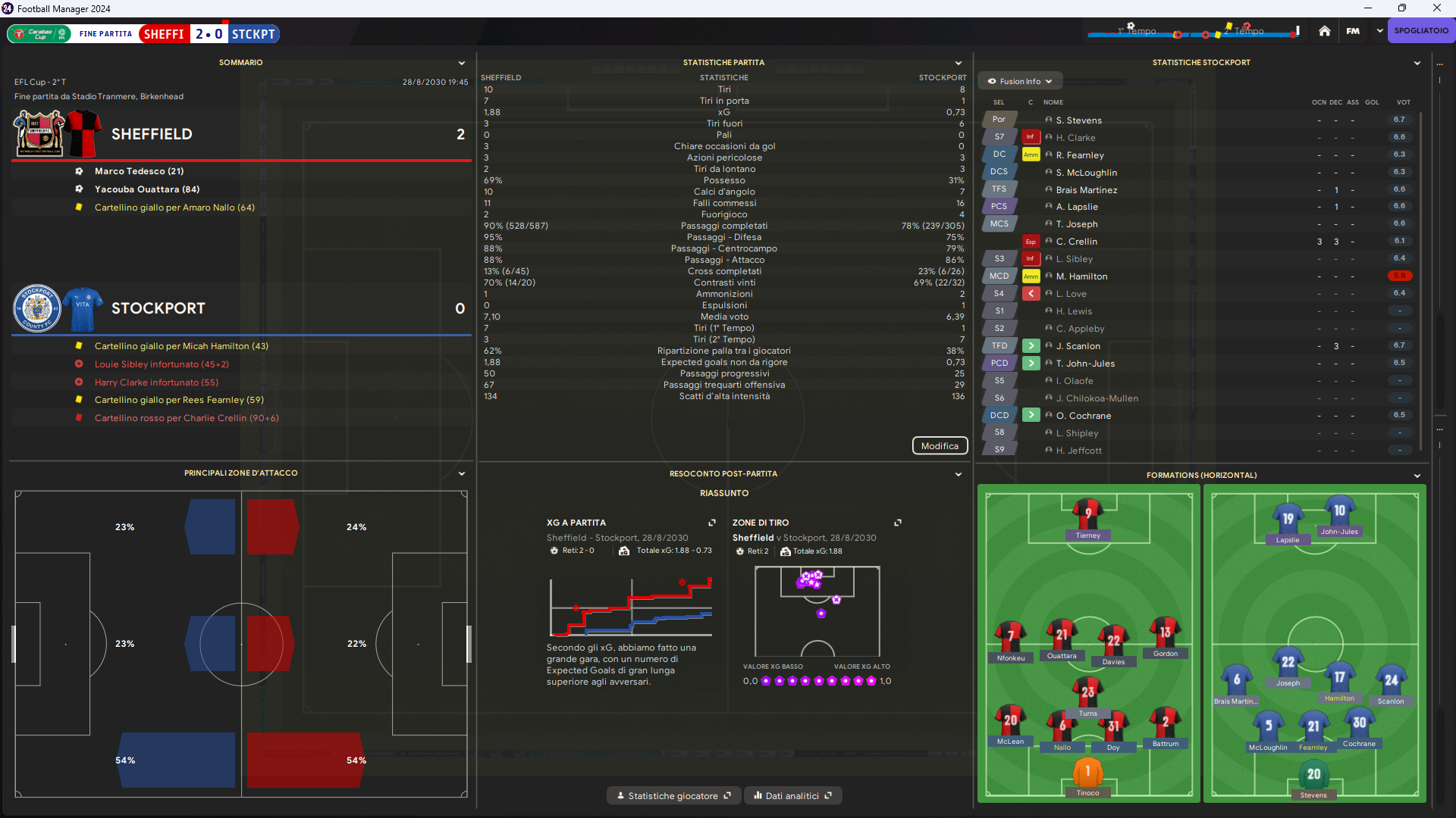I giorni sono pochi, ma il lavoro è mirato. Studiamo lo Stockport partendo dalle certezze: 4-2-3-1 di base, squadra che concede poco e segna poco, molto organizzata. Andiamo a rivedere l’ultima partita disputata per capire ampiezza e altezza del blocco nelle due fasi.