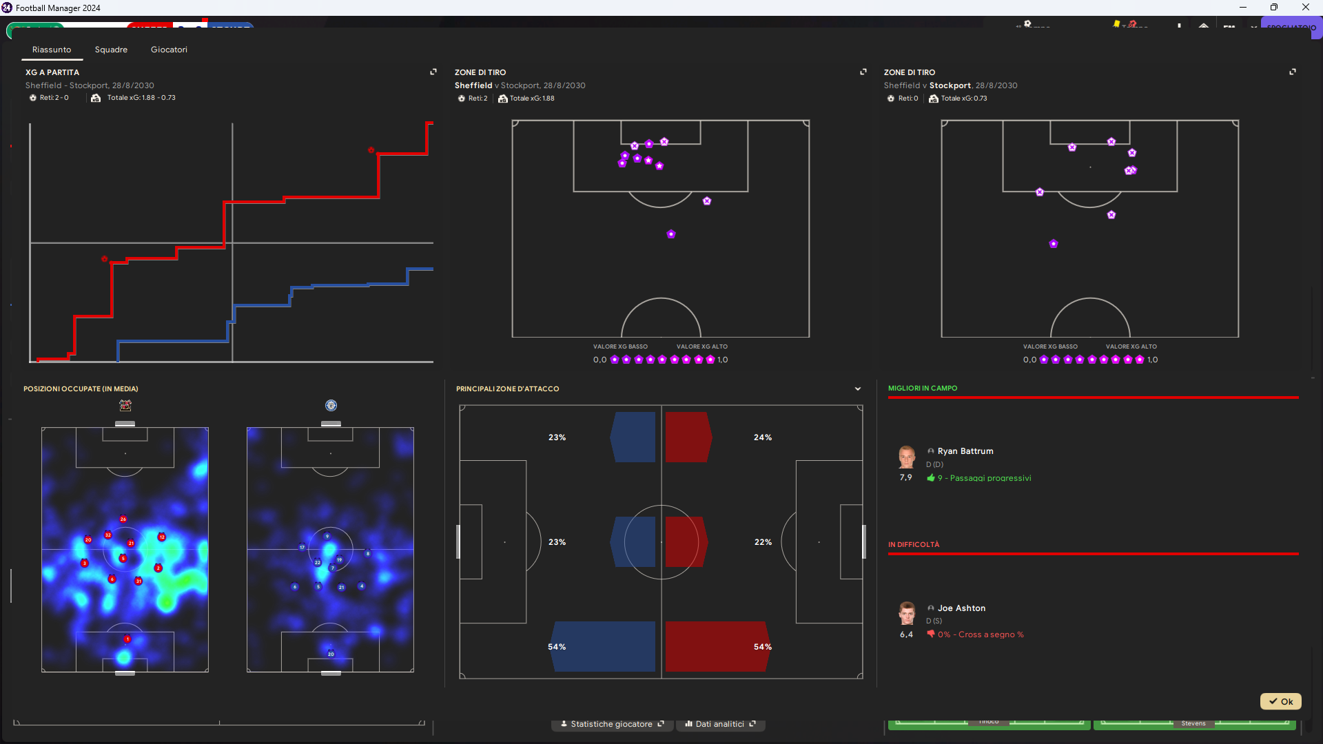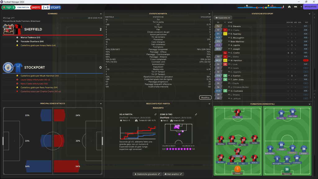 Il possesso sale al 69%, la precisione nel fraseggio tocca il 90%. Creiamo meno rispetto al primo tempo, ma la partita è sempre sotto controllo.