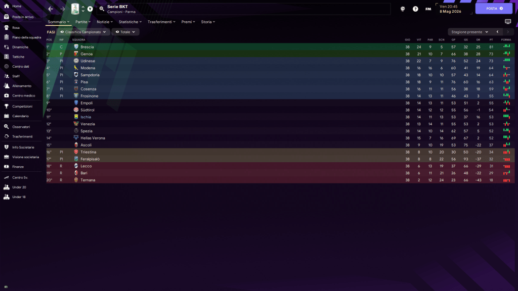 Si chiude quindi cosi una stagione in cui siamo cresciuti gradualmente – dalle prime difficoltà di una neopromossa, senza grandi risorse ne strutture, un piccolo stadio e giovanili ancora mediocri per essere un punto di riferimento dal quale pescare calciatori per la prima squadra – alla sensazione che con una buona gestione possiamo competere per restare a questi livelli.
