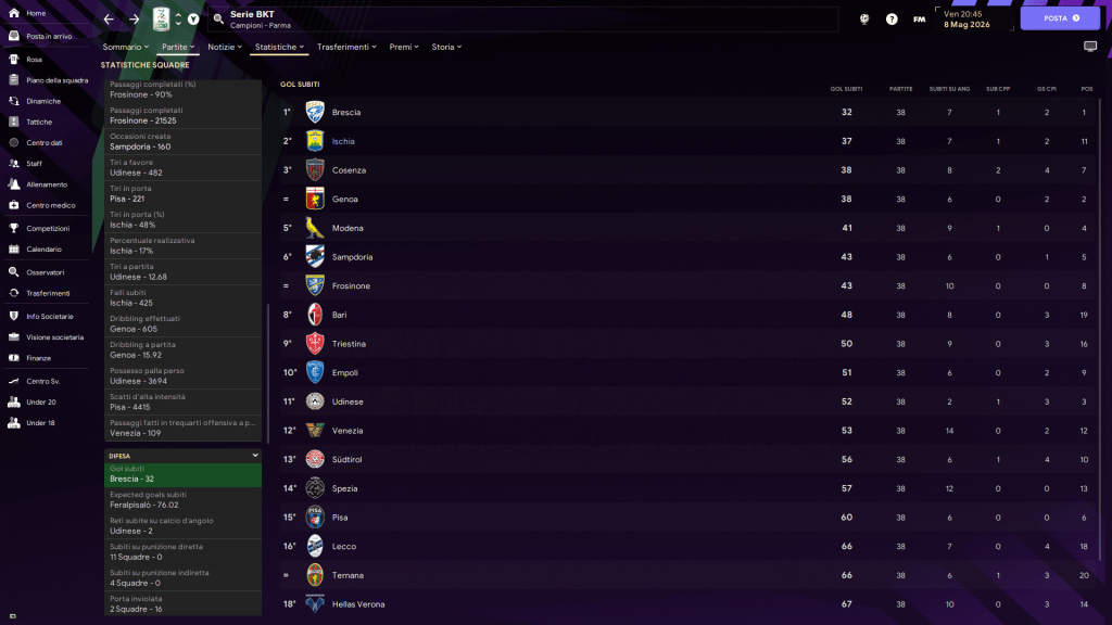La difesa infatti è sempre stata un punto di forza nelle varie stagioni e anche in questa si conferma tale: seconda miglior difesa, con 14 clean sheet.