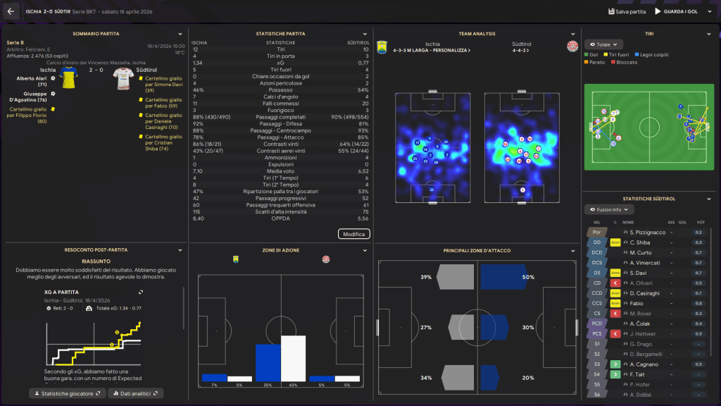 Il cambio tattico di metà anno ha portato i benefici cercati in fase offensiva, nel girone di ritorno infatti abbiamo segnato sempre almeno 1 gol nelle ultime 17 giornate di campionato. Nonostante ciò siamo riusciti a mantenere una certa solidità difensiva.