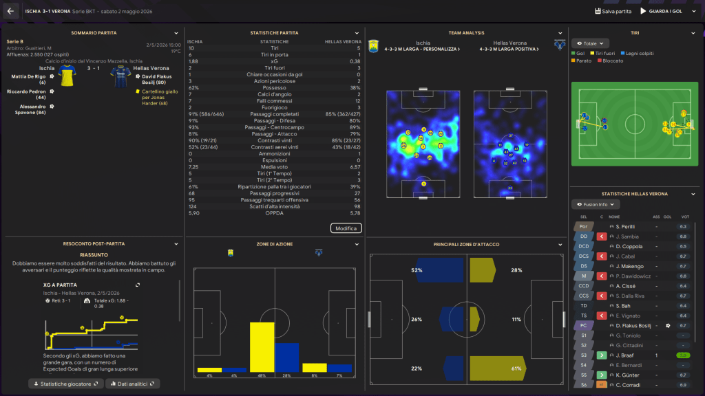 I padroni di casa si giocano le ultime possibilità di salvezza contro di noi. Giocano con un 4-2-3-1 in mentalità offensiva con il quale conducono buona parte della partita passando in vantaggio. Nel finale riusciamo a ripartire con più pericolosità e la portiamo a casa nel recupero.