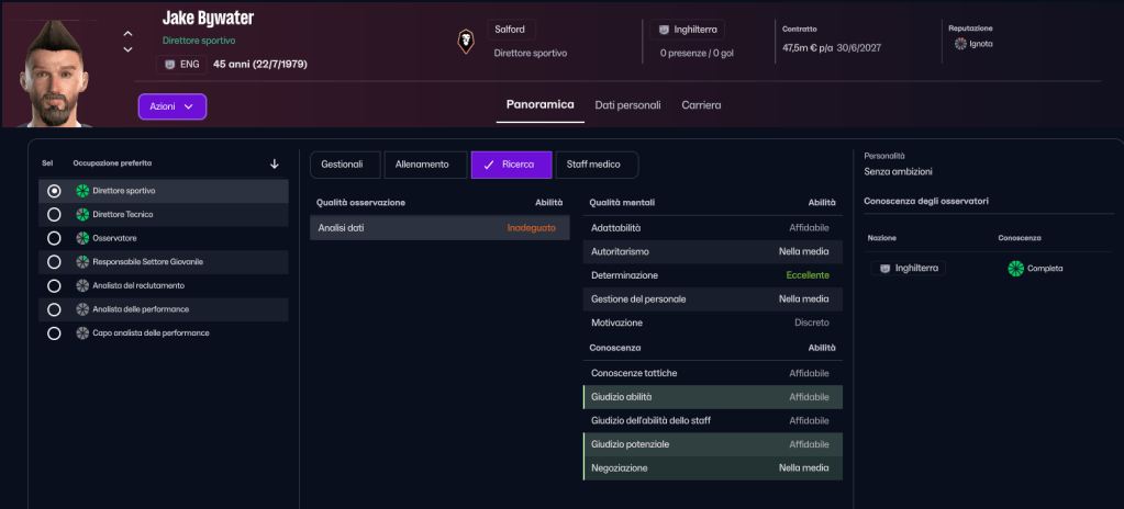 Il mercato sarà affidato al nostro Jake Bywater, che interagirà con la guida tecnica in modo da avere sempre chiare le esigenze della squadra.