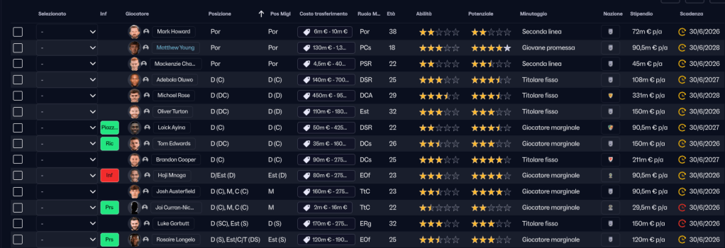 In difesa invece le certezze sono il Centrale Rose e il terzino sinistro, ex Everton, nonché nostro capitano, Luke Garbutt.