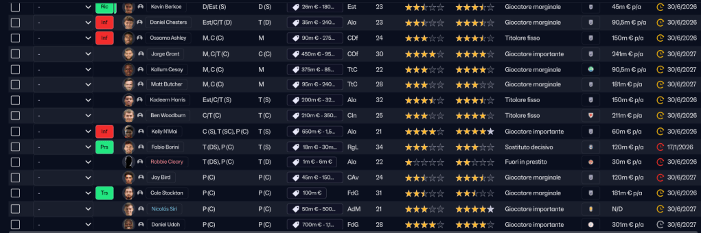 Lo staff medico mi informa che ci sono alcuni giocatori che salteranno l’inizio di stagione, tra cui giocatori molto validi, tra cui uno dei migliori della rosa:il 21enne esterno sinistro Kelly N’May.