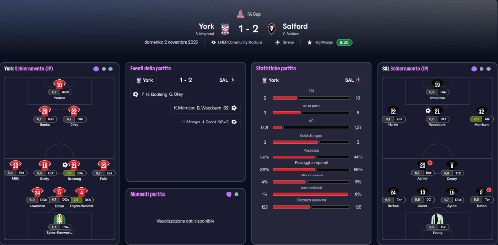Siamo appena usciti dal Match di coppa contro York City, valido per il 1° Turno della FA Cup, in cui abbiamo potuto effettuare un massiccio turnover, vincendo per 2-1 la gara, anche se ne siamo usciti con le ossa rotte in quanto a infortuni gravi subiti.