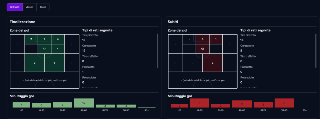 a cui piace segnare dal centro dell’area , zona dalla quale subisce anche il maggior numero di gol