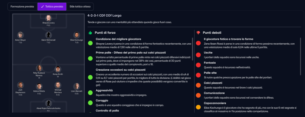 Grazie al rapporto del capo osservatore Duncan, ci facciamo meglio l’idea del nostro prossimo avversario, con il Bomber Lovery e l’esterno destro Kochunga, come giocatori più pericolosi