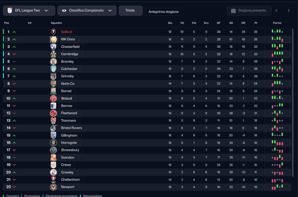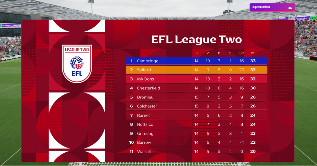 LEAGUE TWO – CLASSIFICA