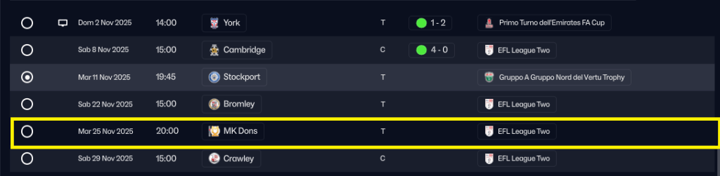 Ecco i prossimi incontri che ci vedranno impegnati a Novembre, con un bel Milton Kaynes vs Salford in programma