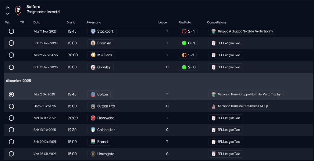 Scontro al vertice, in quanto noi e loro siamo a pari punti, in testa al campionato. Noi dominiamo ancora una volta il possesso, ma sono loro a rendersi pericolosi con un gol mancato su calcio di rigore e successivamente con il vantaggio di Collins. Noi dal nostro canto ce la giochiamo alla pari, ma incredibilmente la palla non entra. Alla fine, sarà un incursione di Grant ad essere premiata con il calcio di rigore che Rose realizza.