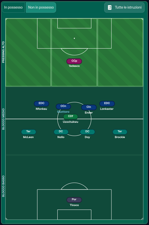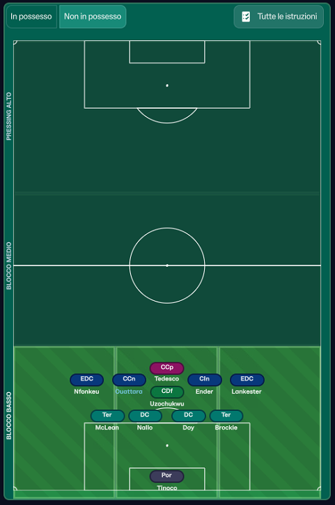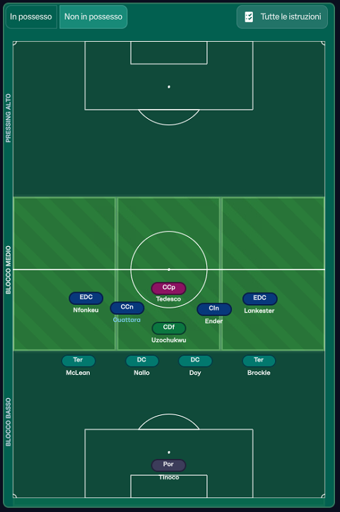 difesa in 4-1-4-1, attacco in 3-4-3.