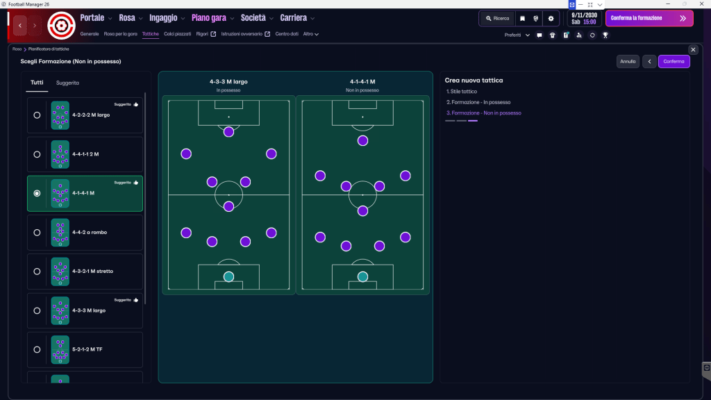 Il primo grande cambio mentale è questo: FM26 non ragiona più in termini di “4-3-3 per sempre”. Ragiona invece in: