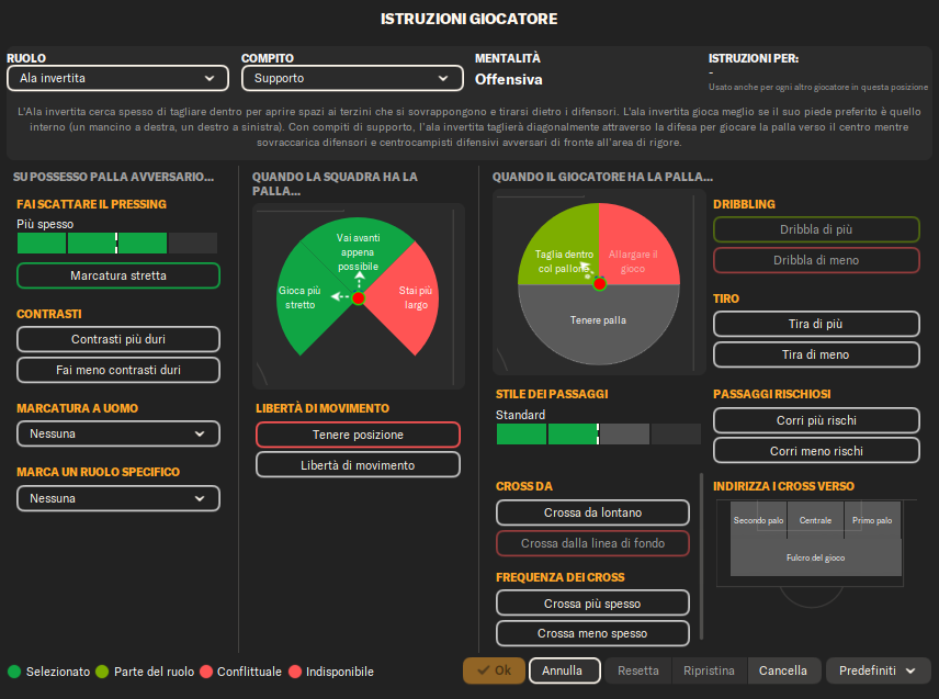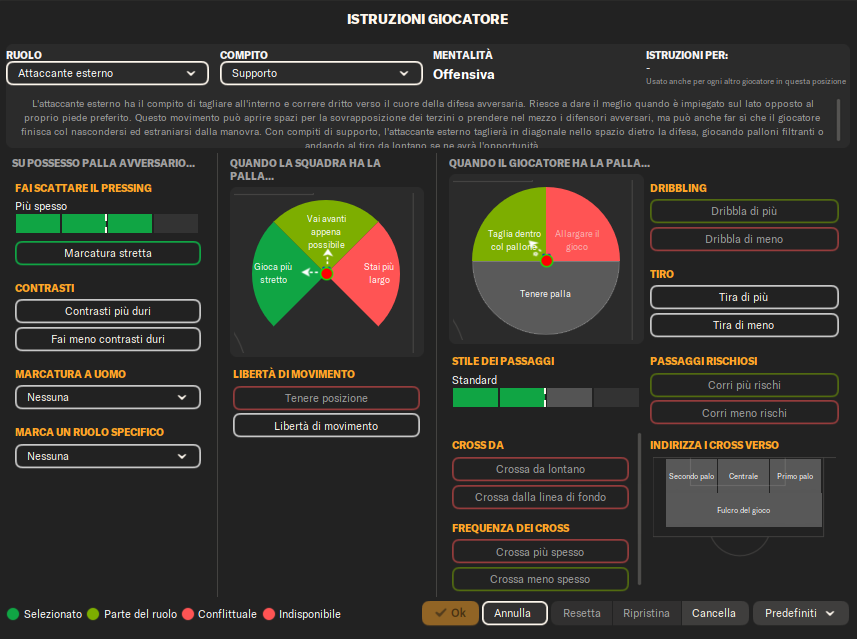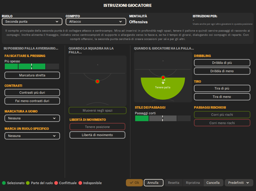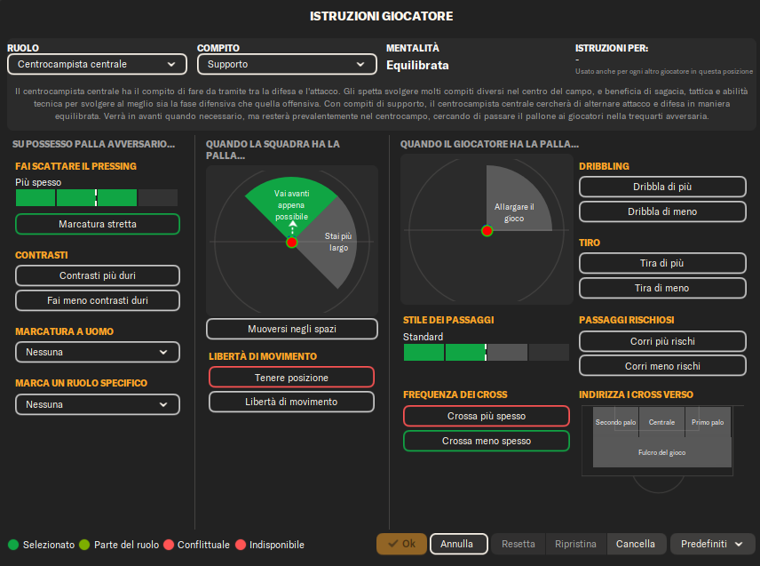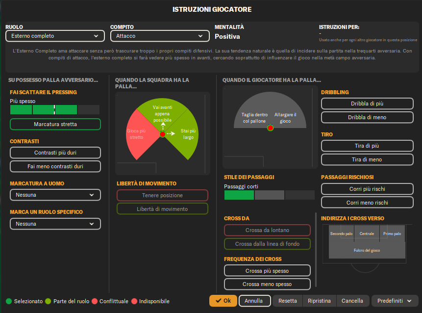 Centrocampista (Attacco): Un giocatore box-to-box con libertà di avanzare, creare occasioni e prendersi rischi nei passaggi per mettere in difficoltà la difesa avversaria.