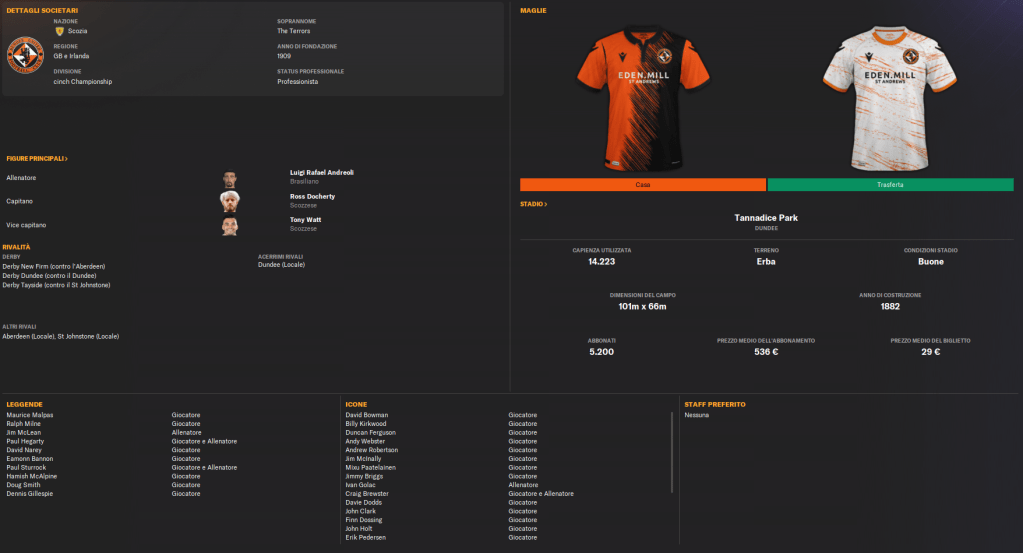 Il Dundee United FC, fondato nel 1909, è uno dei club più prestigiosi della Scozia, con sede a Dundee e rivale storico del Dundee FC nel sentitissimo Dundee Derby. Gioca le sue partite al Tannadice Park, situato a pochi metri dallo stadio dei rivali cittadini.