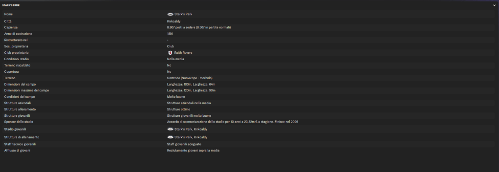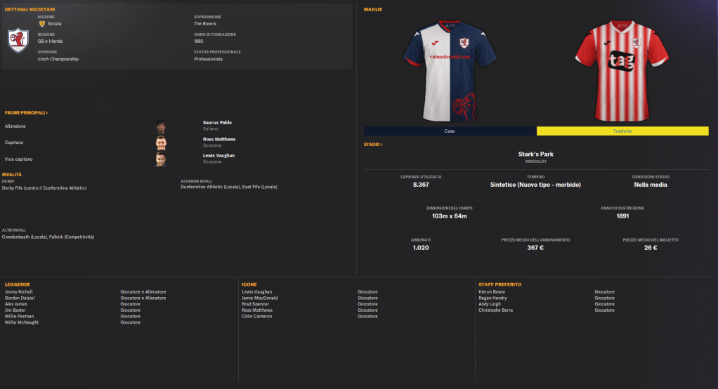 Attualmente militano in Scottish Championship, con l’obiettivo di tornare in Premiership. Con una forte identità di squadra e una solida base di tifosi, il Raith Rovers resta un club rispettato nel panorama calcistico scozzese, capace di regalare sorprese e ambizioni di crescita.