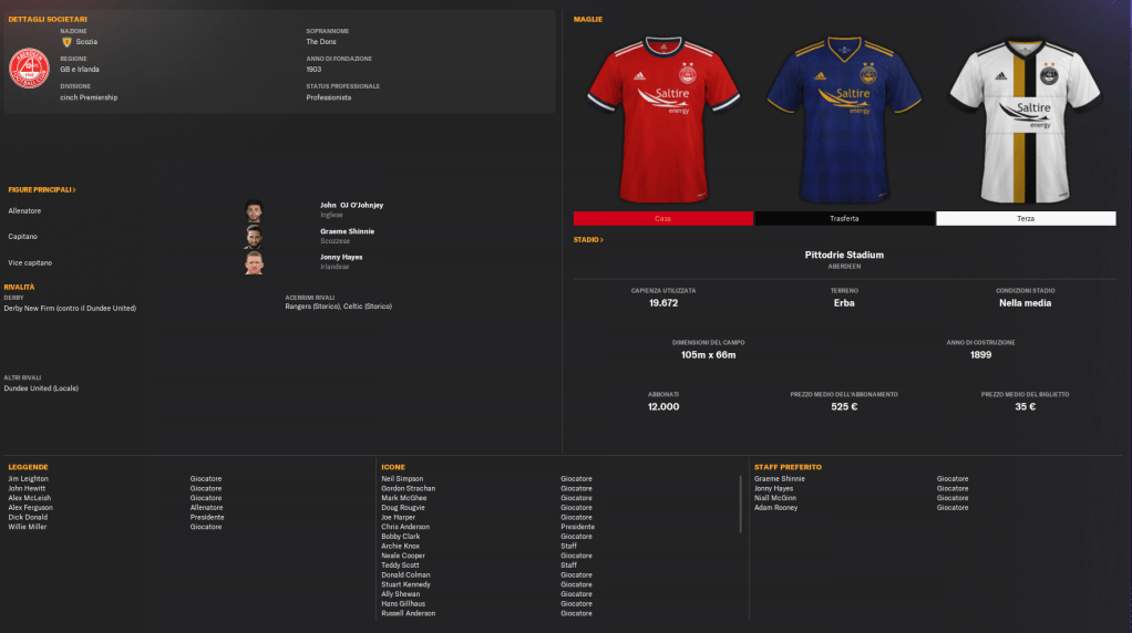 L’Aberdeen FC è una delle squadre più storiche del calcio scozzese, con una tradizione di successi che risale soprattutto agli anni ’80 sotto la guida leggendaria di Sir Alex Ferguson. Il club, fondato nel 1903, gioca le sue partite casalinghe al Pittodrie Stadium, uno degli impianti più iconici della Scozia.